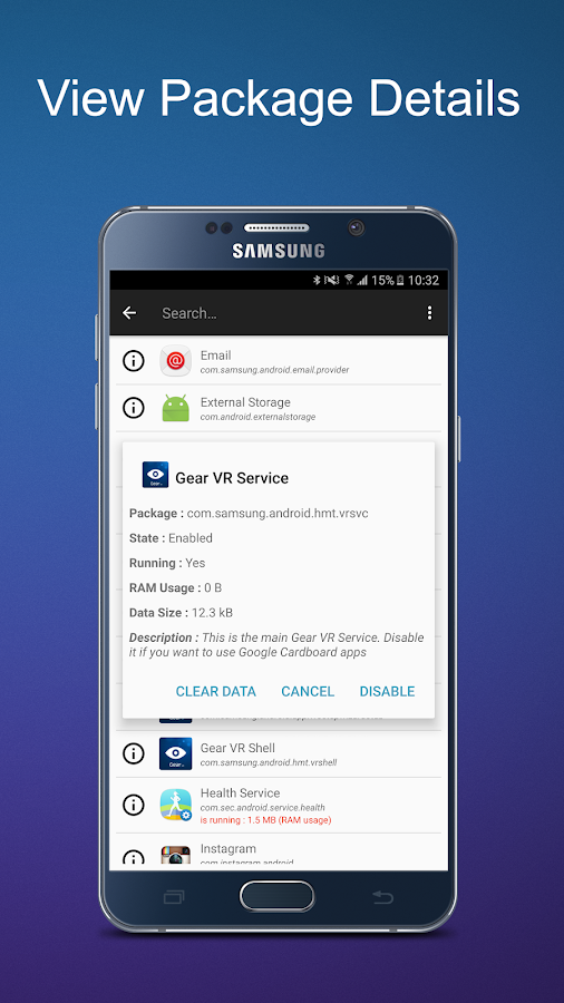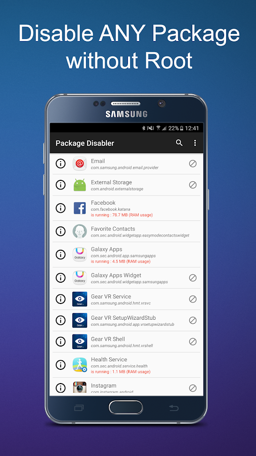 To assist you while disabling, we are doing an extensive research on the purposes of pre-installed packages. Their details can be read inside the app so you can quickly decide whether to block a suspect application. Since there are many Samsung devices and different carriers, your feedback is always welcome so we can have more and better descriptions.